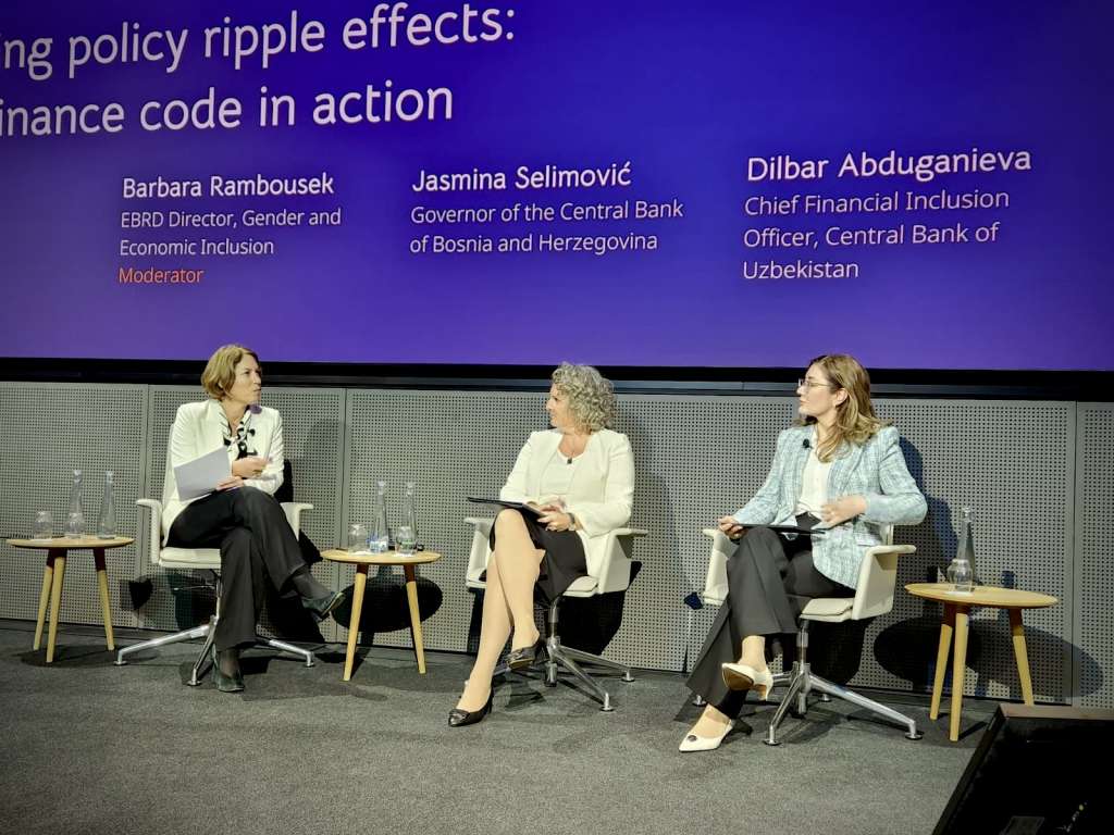 SARAJEVO, 2. oktobra (FENA) - Na poziv Evropske banke za obnovu i razvoj (EBRD), guvernerka Centralne banke Bosne i Hercegovine Jasmina Selimović učestvovala je u Londonu na svečanom događaju posvećenom rezultatima i daljem razvoju EBRD Women in Business (WiB) programa.