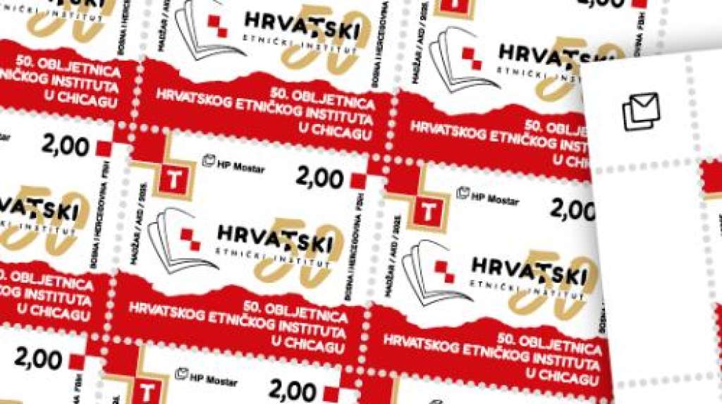 MOSTAR, 8. listopada (FENA) - Hrvatska pošta (HP) Mostar tiskala je prigodno izdanje maraka "50. obljetnica Hrvatskog etničkog instituta u Chicagu".