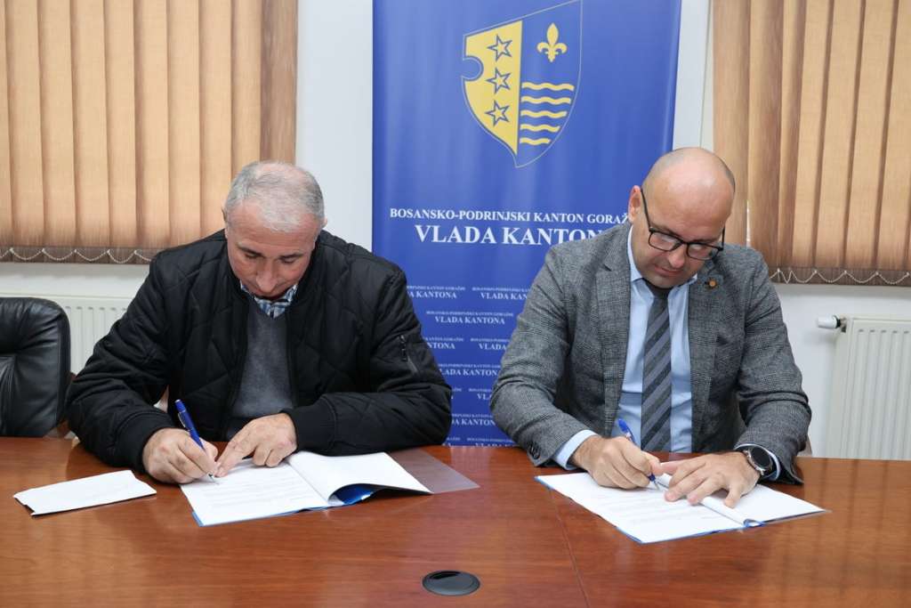 GORAŽDE, 9. oktobra (FENA) - Ministar za urbanizam, prostorno uređenje i zaštitu okoline Bosanskopodrinjskog kantona (BPK) Goražde Bojan Krunić potpisao je danas ugovor sa direktorom firme GPD "Drina" d.o.o. Goražde Hajrudinom Vlajčićem o izvođenju radova na izradi termo fasade i zamjeni vanjske stolarije na aneksu objekta JU OŠ "Mehmedalija Mak Dizdar" u goraždanskom naselju Vitkovići.