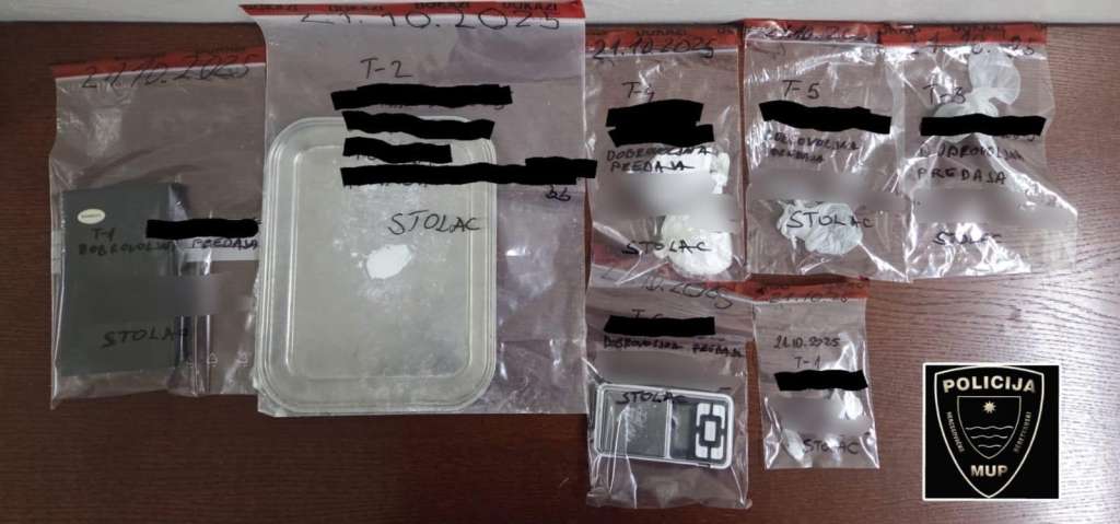 STOLAC, 22. listopada (FENA) - Policijski službenici Sektora kriminalističke policije – Odjela za posebne namjene Uprave policije Ministarstva unutarnjih poslova Hercegovačko-neretvanske županije (HNŽ), 21. listopada proveli su akciju pretresa stana u Stocu, koji koristi G.NJ. (1980.), pri čemu je pronađena određena količina materija koje asociraju na opojne droge.