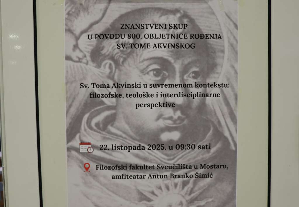 MOSTAR, 22. listopada (FENA) - Znanstveni skup u povodu 800. obljetnice rođenja sv. Tome Akvinskog pod nazivom “Sv. Toma Akvinski u suvremenom kontekstu: filozofske, teološke i interdisciplinarne perspektive” održan je u srijedu na Filozofskom fakultetu Sveučilišta u Mostaru.