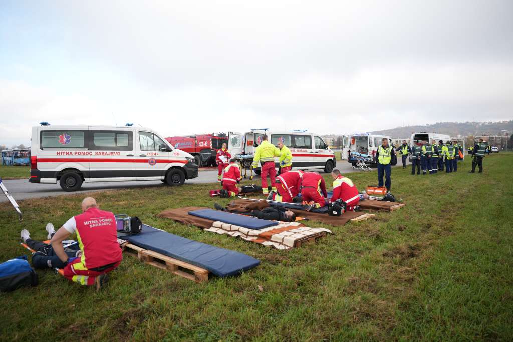 SARAJEVO, 28. oktobra (FENA) - Na području Međunarodnog aerodroma Sarajevo danas je uspješno održana vježba pod nazivom “Nesreća aviona u krugu Međunarodnog aerodroma Sarajevo”, kojom je simuliran pad aviona tipa ATR 72 sa 24 putnika i šest članova posade.