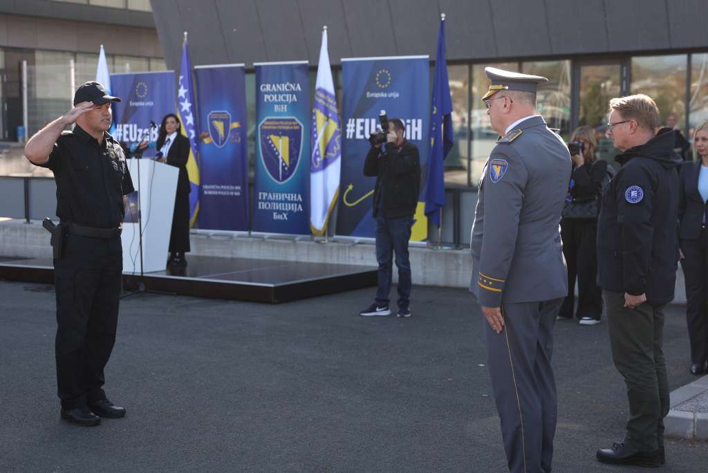 SARAJEVO, October 31 (FENA) – The deployment and presence of more than one hundred members of the European Border and Coast Guard Agency (Frontex) across eight organizational units of the Border Police of BiH at the country’s borders with neighboring states will significantly enhance the security and protection of Bosnia and Herzegovina’s borders in line with European standards and values, it was emphasized today at the Sarajevo International Airport during a visit by European Union and Frontex representatives to the Border Police of BiH.