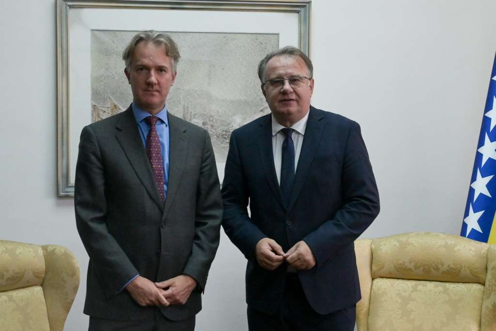 SARAJEVO, 3. novembra (FENA) - Premijer Federacije Bosne i Hercegovine Nermin Nikšić razgovarao je danas u sjedištu Vlade FBiH u Sarajevu sa ambasadorom Velike Britanije u BiH Julianom Reillyem o mogućnostima unapređenja saradnje s fokusom na energetski sektor i putnu infrastrukturu, kao i o evropskom putu naše zemlje.