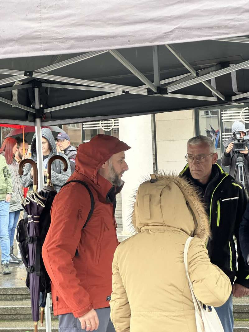 SUBOTICA, 17. studenoga (FENA) - Vojvođanskom autoprijevozniku Milomiru Jaćimoviću, koji je već osam dana štrajka glađu zbog državne zaplijene sedam autobusa kojima je prevozio studente, pozlilo je u središtu Novoga Sada, a oporbeni zastupnik srbijanske skupštine Srđan Milivojević u znak potpore lisičinama se vezao za jedan od vraćenih autobusa.