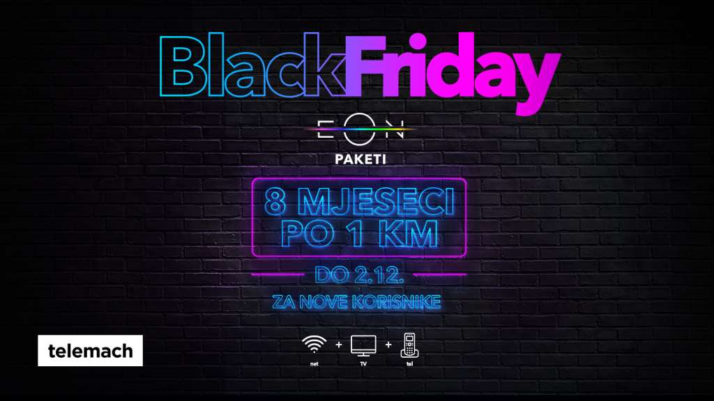 - Kupi EON paket, pređi na GIGA mrežu nove generacije i osjeti nevjerovatnu razliku u kvalitetu usluga. Požuri, ova nevjerovatna akcija traje od 21.11. do 2.12. 2025. godine. Iskoristi pogodnosti Black Friday ponude jer EON paketi ti donose sve što ti treba za savršenu zabavu i povezivanje – poručuju iz Telemacha.