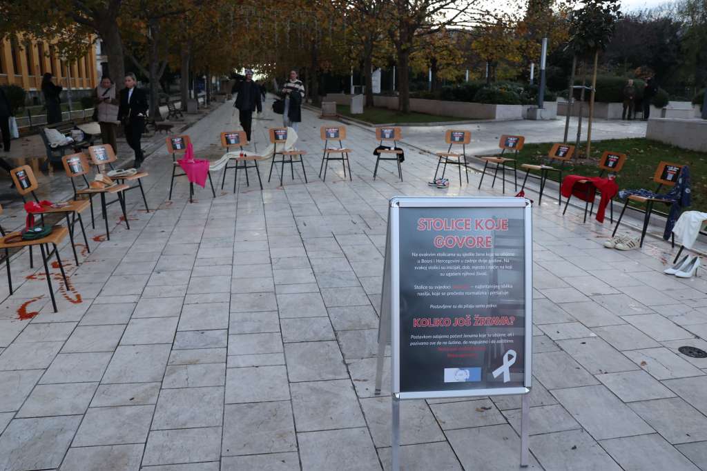 MOSTAR, 26. studenoga (FENA) – U Mostaru je u srijedu počeo umjetničko-aktivistički performans pod nazivom "Stolice koje govore", koji će do 10. prosinca podsjećati građane na 15 žrtava femicida u protekle dvije godine u Bosni i Hercegovini.
