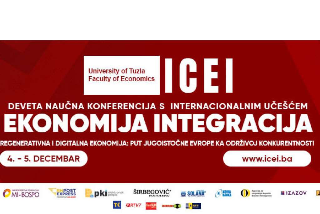 TUZLA, 29. novembra (FENA) - Deveta međunarodna naučna konferencija ICEI 2025 - Ekonomija integracija, na temu "Regenerativna i digitalna ekonomija: Put Jugoistočne Evrope ka održivoj konkurentnosti", bit će održana 5. decembra 2025. godine na Ekonomskom fakultetu Univerziteta u Tuzli i predstavlja prvu zvaničnu aktivnost obilježavanja 50 godina rada Ekonomskog fakulteta.