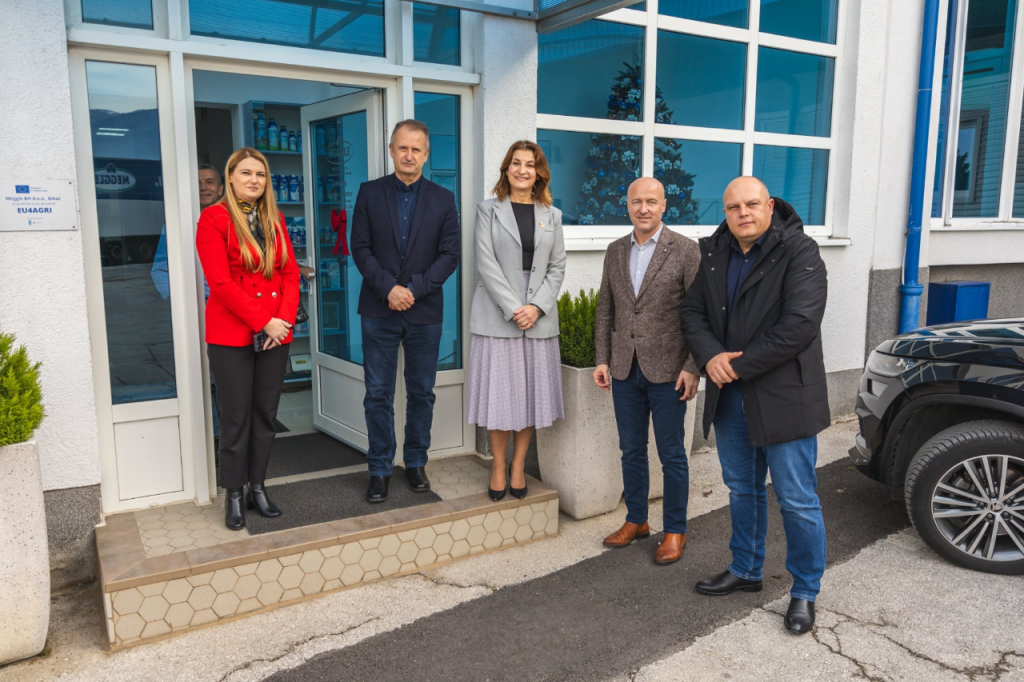 BIHAĆ, 1. decembra (FENA) - Unsko-sanski kanton intenzivno radi na unaprjeđenju privrednog sektora kroz stratešku saradnju sa vodećim kompanijama, a jedan od primjera je danas održan sastanak u Mljekari Meggle u Bihaću. Predstavnici kantonalne izvršne i zakonodavne vlasti razgovarali su sa menadžmentom kompanije o dosadašnjim poslovnim rezultatima, kao i o mogućnostima daljnjeg razvoja i jačanja mljekarske industrije u BiH.