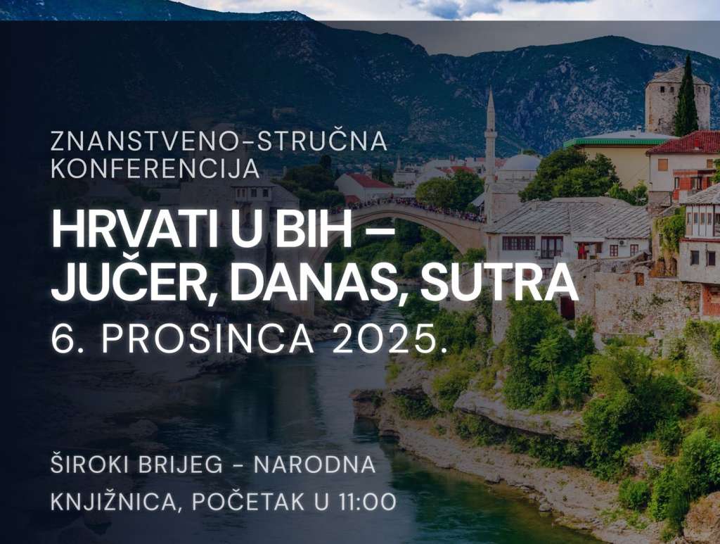 ŠIROKI BRIJEG, 2. prosinca (FENA) - Narodna knjižnica u Širokom Brijegu bit će 6. prosinca od 11 sati domaćin znanstveno-stručne konferencije pod nazivom "Hrvati u BiH – jučer, danas, sutra", u organizaciji portala Bild.ba.