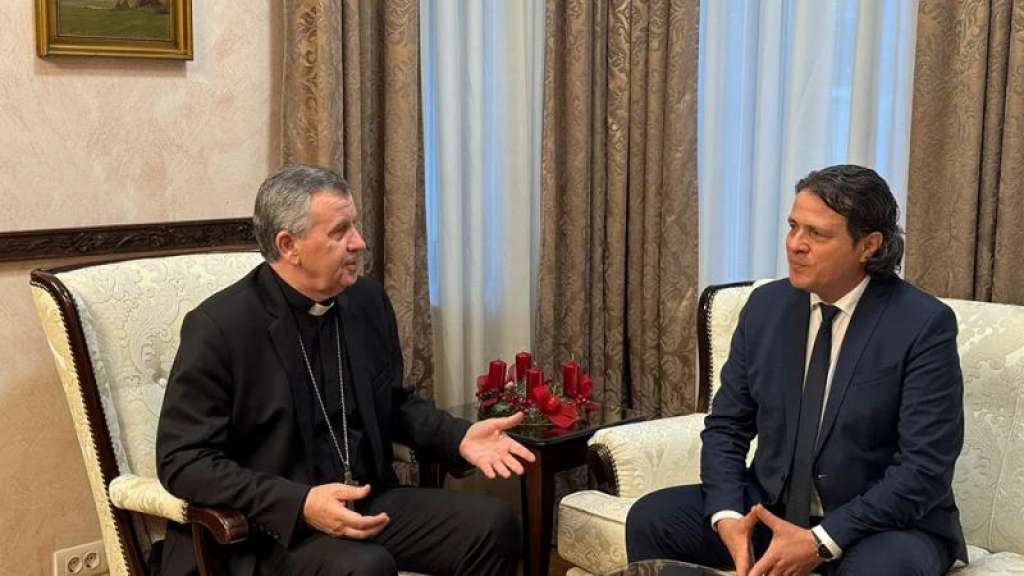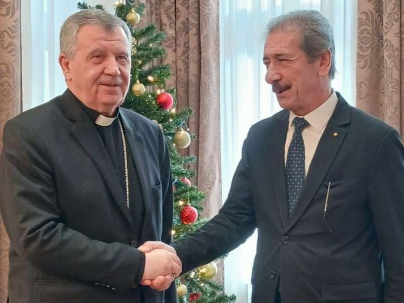 SARAJEVO, 3. prosinca (FENA) - Vrhbosanski nadbiskup metropolit mons. Tomo Vukšić susreo se u Nadbiskupskoj rezidenciji u Sarajevu s federalnim dopremijerom i ministrom financija u Vladi Federacije BiH Tonijem Kraljevićem. Susretu je nazočio i pomoćnik ministra u Odjelu za trezor Mario Glibić, izvijestili su iz Vrhbosanske nadbiskupije.