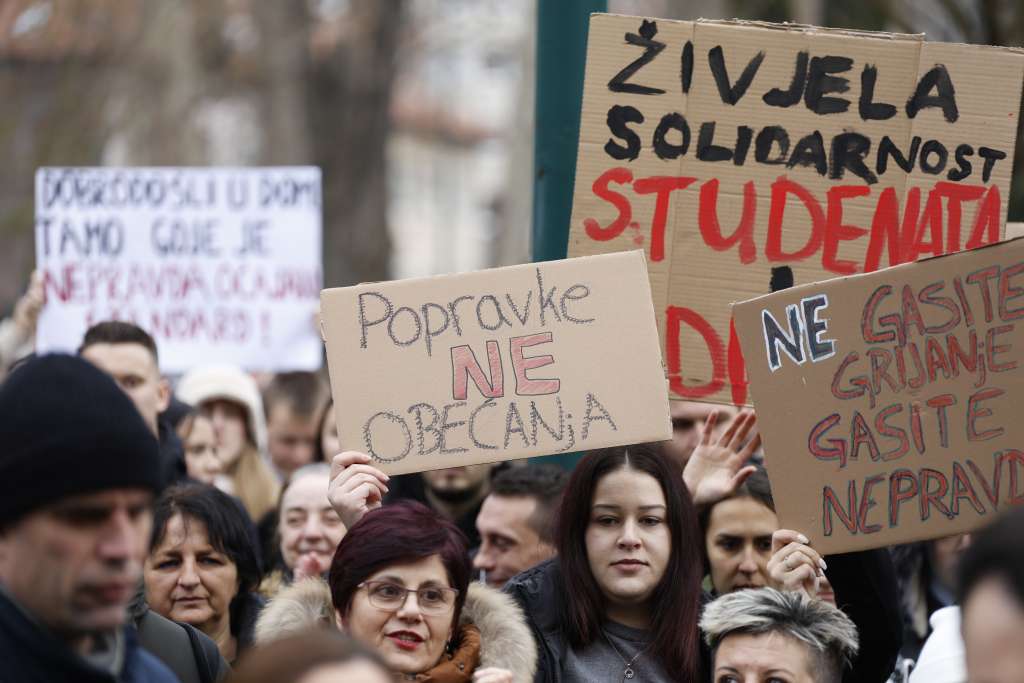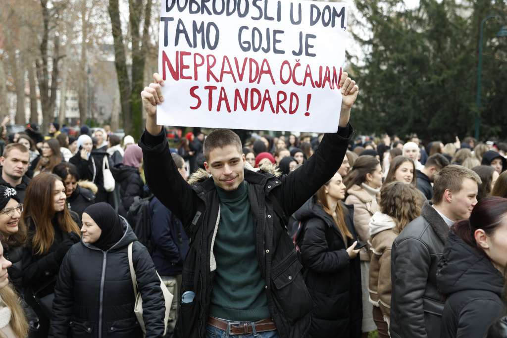 SARAJEVO, 9. decembra (FENA) – Stotine studenata iz sarajevskih domova "Bjelave" i "Nedžarići" okupili su se danas ispred zgrade Vlade Kantona Sarajevo, zahtijevajući hitno rješavanje dugogodišnjeg lošeg stanja u sarajevskim studentskim domovima.