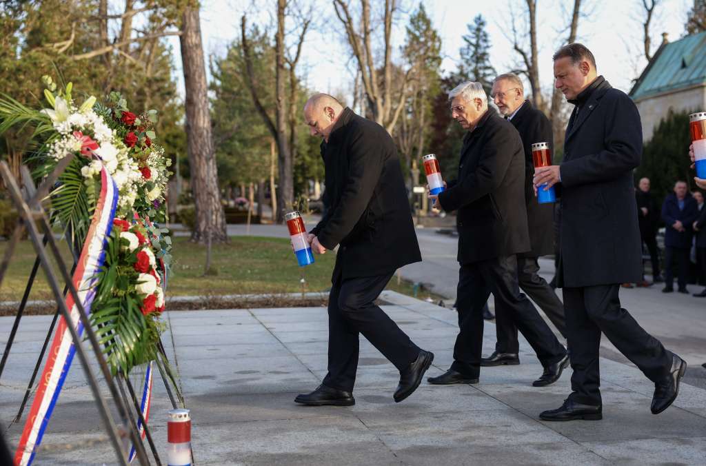 ZAGREB, 10. prosinca (FENA) - Izaslanstva HDZ-a i Domovinskog pokreta u srijedu su na Mirogoju u Zagrebu odala počast prvom hrvatskom predsjedniku Franji Tuđmanu na 26. obljetnicu njegove smrti, naglasivši njegove nemjerljive zasluge sa stvaranje hrvatske države.