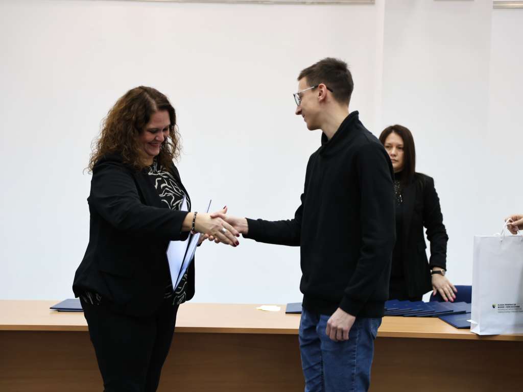 MOSTAR, 15. prosinca (FENA) - Svečana manifestacija dodjele nagrada najboljim učenicima osnovnih i srednjih škola u Federaciji Bosne i Hercegovine za školsku 2024./2025. godinu održana je u ponedjeljak u Mostaru, gdje je federalna ministrica obrazovanja i znanosti Jasna Duraković uručila diplome i novčane nagrade za 54 najuspješnija učenika te priznanja školama koje sustavno prepoznaju i razvijaju učeničke talente.