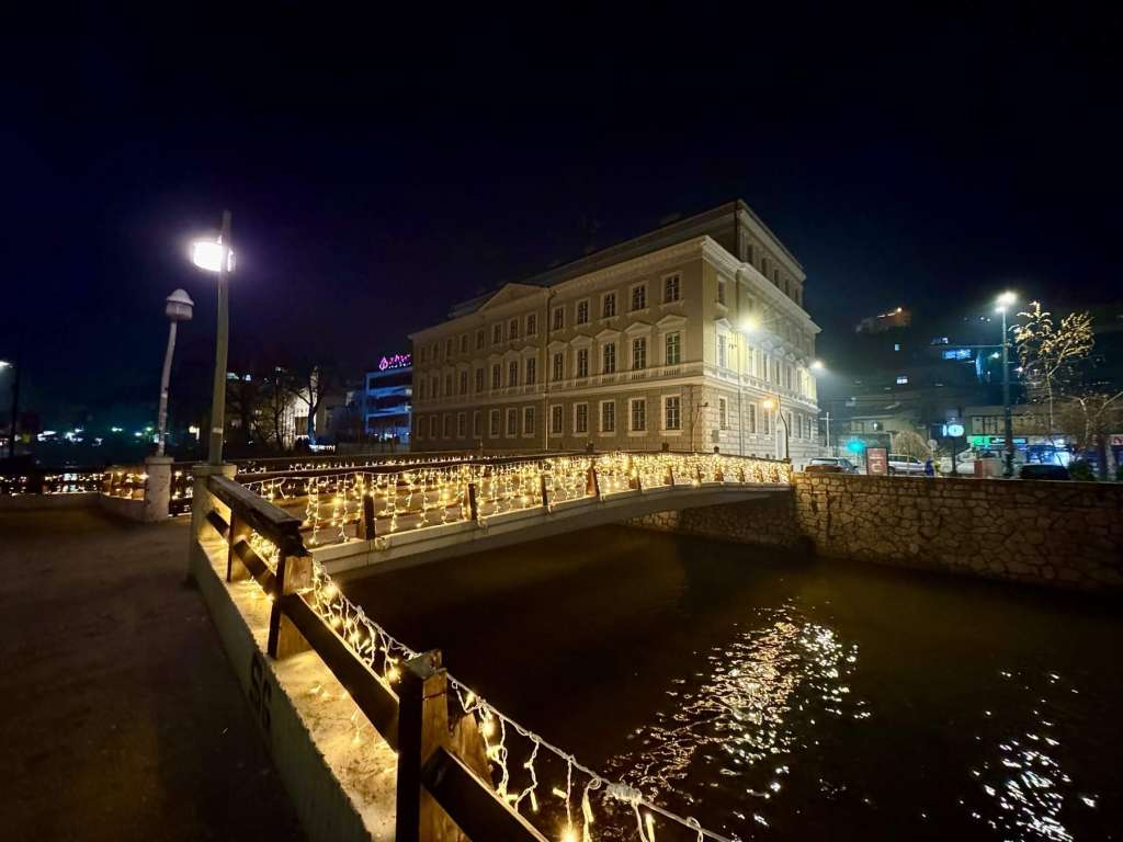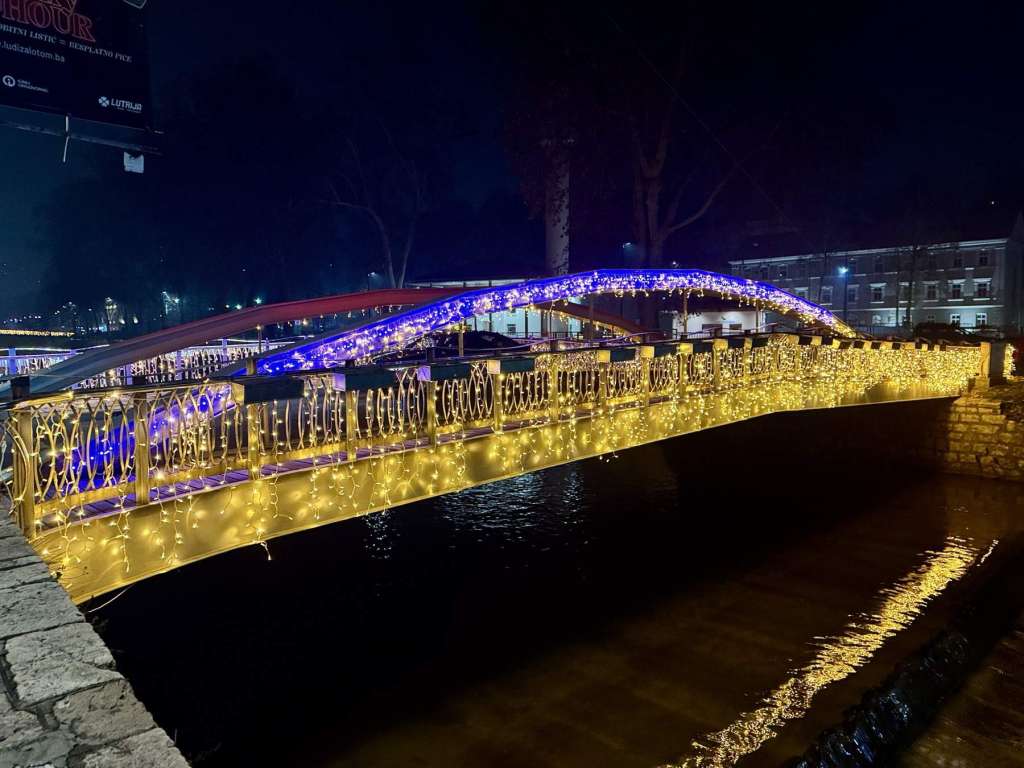 SARAJEVO, 16. decembra (FENA) - Sarajevski mostovi: Šeher-ćehajina ćuprija, Novi most kod Vijećnice, Latinska ćuprija, Drvenija, Ćumurija, Čobanija, Festina lente i Eiffelov most, zablistali si u raskošnom prazničnom ruhu.