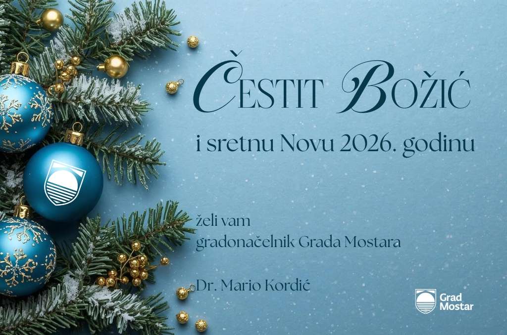 MOSTAR, 24. prosinca (FENA) - Gradonačelnik Mostara Mario Kordić uputio je u četvrtak čestitku povodom nadolazećih blagdana Božića i Nove godine.