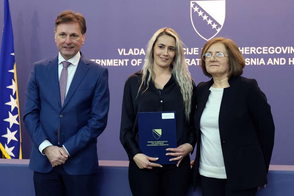 SARAJEVO, 24. decembra (FENA) - Federalno ministarstvo poljoprivrede, vodoprivrede i šumarstva danas je u Sarajevu dodjelilo rješenja za 69 mladih poljoprivrednika koji su ostvarili pravo na novčanu podršku u okviru mjere „Pokretanje poslovanja mladih poljoprivrednika” za 2025. godinu.