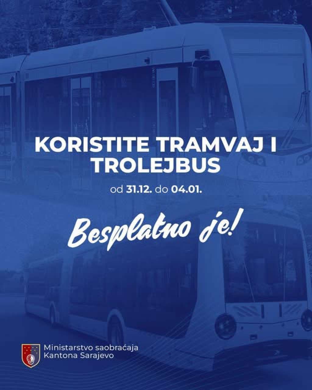 SARAJEVO, 31. decembra (FENA) - Tramvajski i trolejbuski saobraćaj će od danas do 4. januara 2026. godine biti besplatan za sve. To uključuje i dnevni i noćni prevoz.