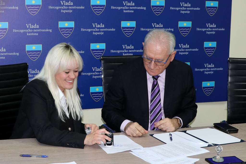 MOSTAR, 31. prosinca (FENA) - Ministar zdravstva, rada i socijalne skrbi HNŽ-a Milenko Bevanda i predsjednica Strukovnog sindikata doktora medicine i stomatologije Andrea Čolić Faletar potpisali su u srijedu Kolektivni ugovor o pravima i obvezama poslodavaca i zaposlenika u djelatnosti doktora medicine i stomatologije na području Hercegovačko-neretvanske županije.