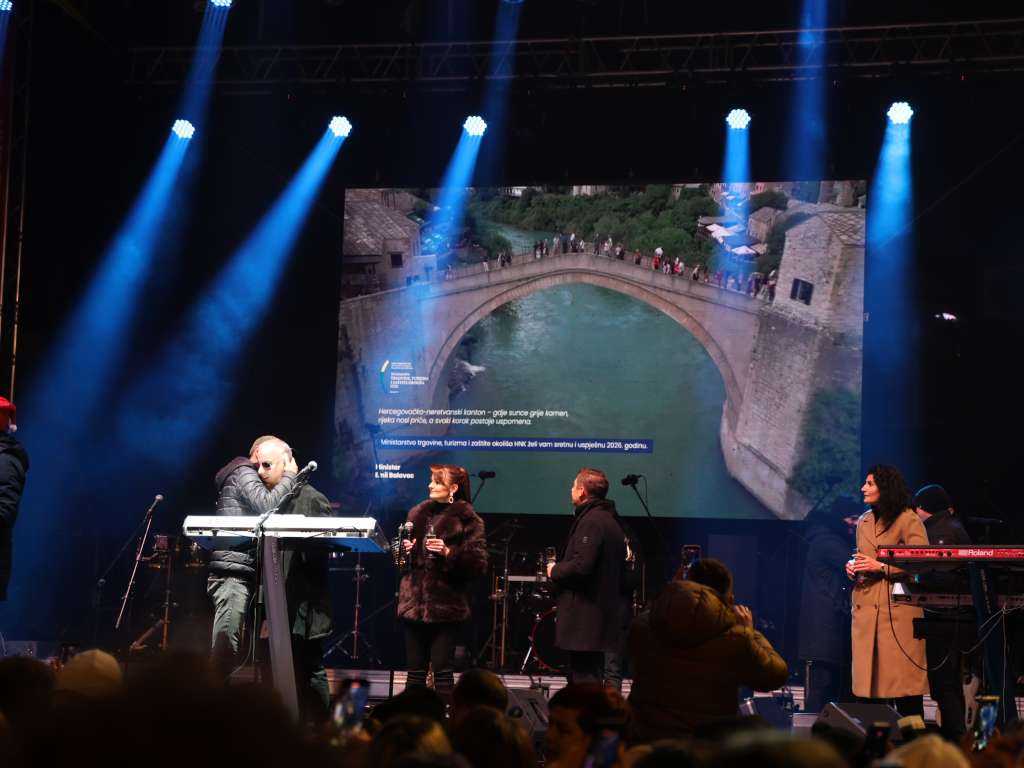 MOSTAR, 1. siječnja (FENA) – Veliki broj Mostaraca i turista dočekao je Novu godinu na prostoru iza Stare gimnazije, gdje ih je popularni pjevač Saša Matić, izvodeći svoje najveće hitove, uveo u 2026. godinu.
