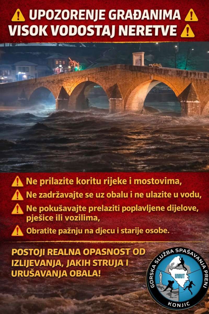 SARAJEVO, 6. januara (FENA) - Zbog obilnih snježnih padavina, a potom i kiše, u Kantonu Sarajevo od sinoć je zabilježen porast vodostaja rijeka Miljacka, Bosna i Željeznica. Kako je potvrdio direktor Kantonalne uprave civilne zaštite Kantona Sarajevo Dženan Brkanić, situacija se kontinuirano prati, a za sada nema većih prijetnji po stanovništvo.