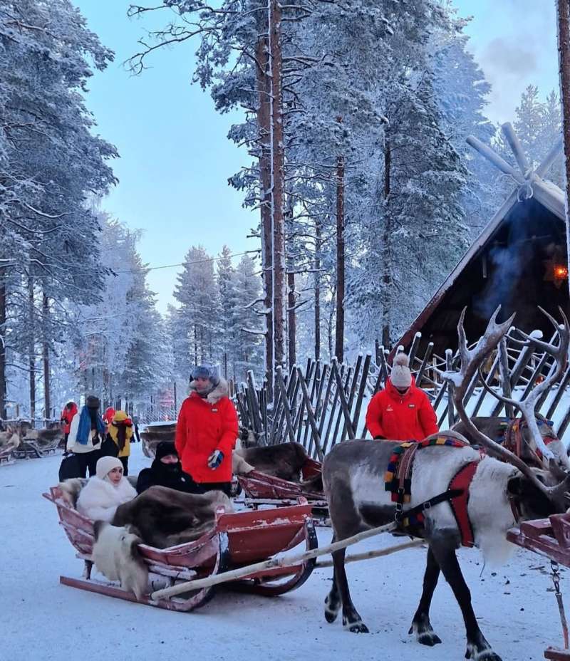 -U Rovaniemi smo stigli nakon osam sati vožnje, nedugo nakon zalaska sunca. Bilo je -27C sa učestalim vjetrom (osjeća se -34C). Sa željezničke stanice smo taksijem došli do hotela koji se nalazio na kraju šetališta u centru grada. Planirali smo ostati tri noći. Vrlo je bitno, pogotovo ako putujete sa djecom, da budete konkretni i brzi na svakom koraku, i da sve odluke i razmišljanja donosite u toplini sobe. Slijedi prijava, kratka aklimatizacija, a nakon toga odlazimo u Santa Klaus Village, selo smješteno tačno na arktičkom krugu. Ono je službena kuća Djeda mraza, pošta iz koje se šalju pisma sa posebnim arktičkim pečatom. Prvi dan dolaska u Santa Klaus djeca su uživala u vožnji irvasima, a zatim smo obišli sve druge dijelove sela i slavili Nadijin 13. rođendan u malom restoranu u okviru sela - priča Adis.