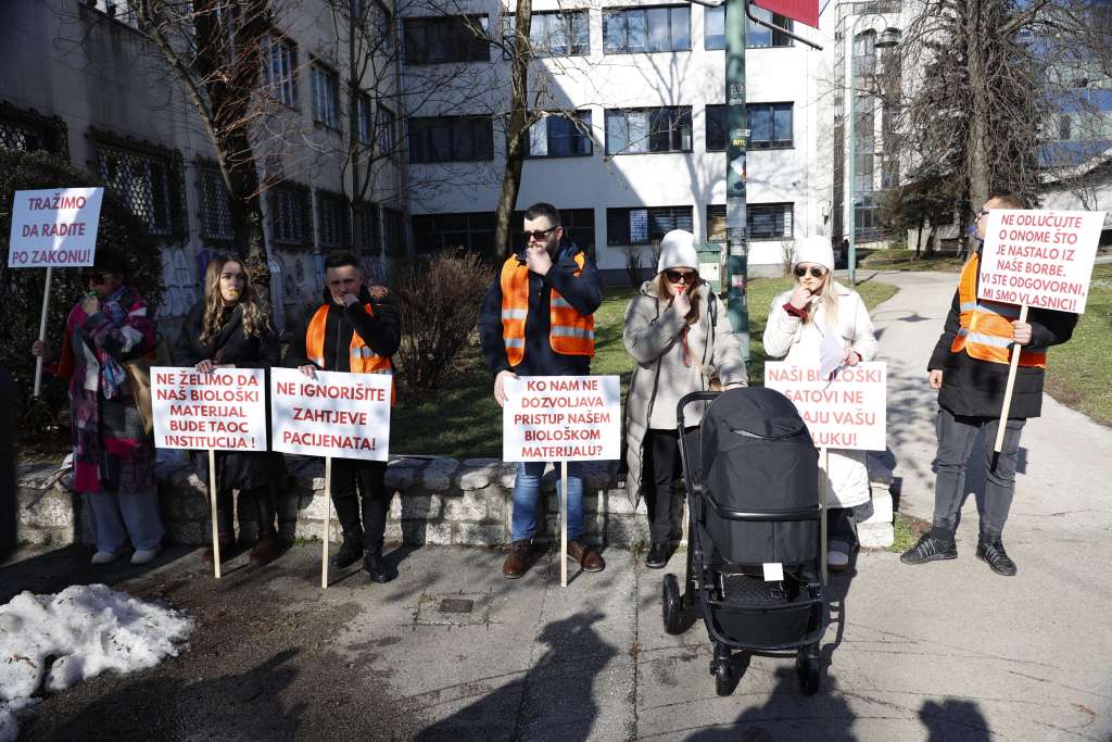 SARAJEVO, 27. januara (FENA) - Grupa pacijenata oštećenih zatvaranjem Poliklinike Northwestern Medical Center u Sarajevu okupila se danas ispred Federalnog ministarstva zdravstva u glavnom gradu BiH kako bi tražili od odgovornih hitan stručni nadzor nad svojim zamrznutim genetskim materijalom koji je 3,5 mjeseca bez zvaničnog nadzora.