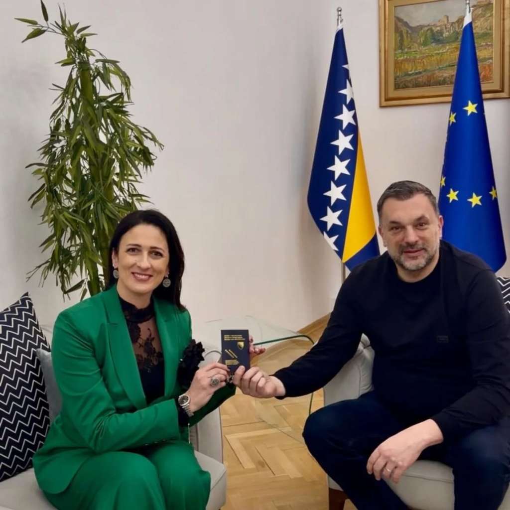 SARAJEVO, 1. februara (FENA) - Arijani Jašarević Vojić, renomiranoj delegatkinji Evropske i Svjetske rukometne federacije iz Bihaća, na zvaničnom prijemu u Ministarstvu vanjskih poslova Bosne i Hercegovine uručen je diplomatski pasoš BiH.