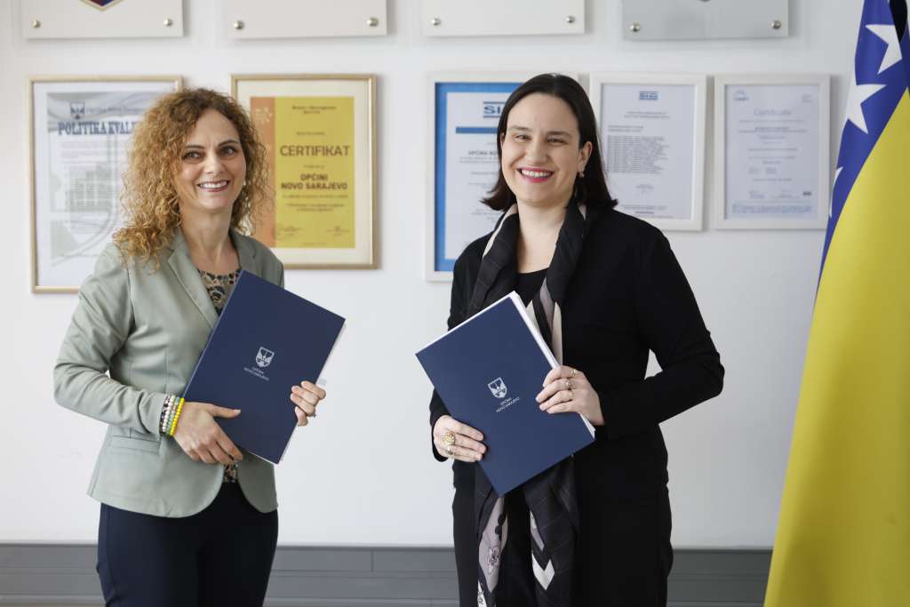 SARAJEVO, 2. februara (FENA) - Načelnica Općine Novo Sarajevo Benjamina Karić i direktorica firme "Mibral" d.o.o. Sarajevo Maja Bralović Smith potpisale su Ugovor o izvođenju radova na vanjskom uređenju Parka 'Trg Heroja'.