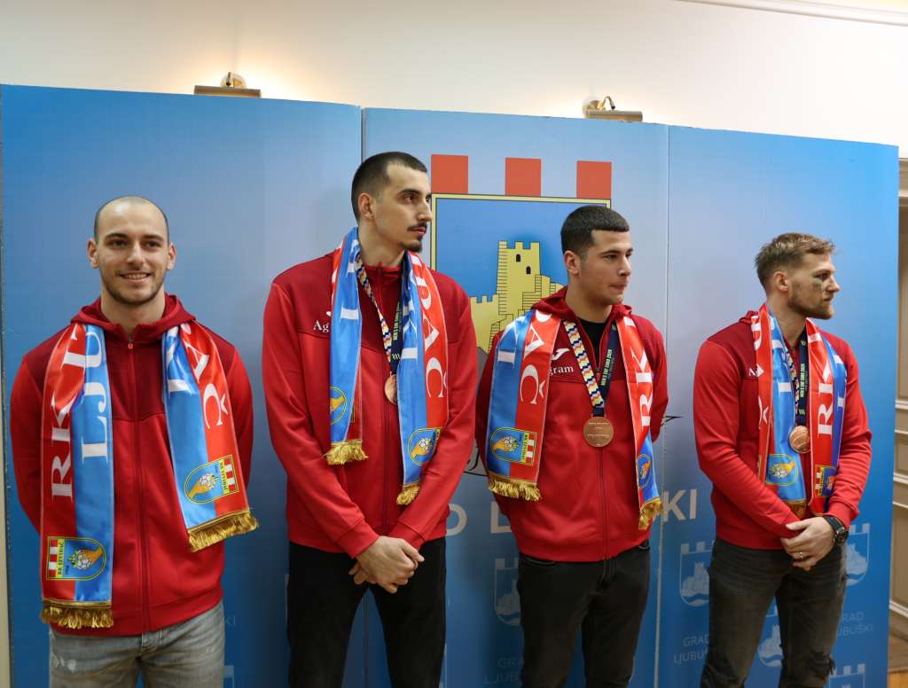 LJUBUŠKI, 4. veljače (FENA) - Velik broj Ljubušaka, ali i ostalih iz Hercegovine, u srijedu je u Ljubuškom dočekao četvoricu rukometaša koji dolaze iz ovog mjesta, koji su igrali u Rukometnom klubu (RK) Izviđač Agram te su s reprezentacijom Hrvatske na tek završenom Europskom rukometnom prvenstvu osvojili brončanu medalju. Brončane rukometaše Davida Mandića, Mateja Mandića, Ivana Pavlovića i Diana Nerisa Ćešku prvo je ugostio Ljubuški gradonačelnik Vedran Markotić, a onda nakon svečanog prijema i ljubuška publika.