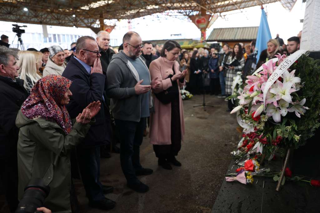 SARAJEVO, 5. februara (FENA) - Masakr na Markalama, rana koja je duboko obilježila Sarajevo i čije se teško sjećanje svakog februara ponovo vraća, obilježen je danas polaganjem cvijeća i odavanjem počasti na bolnu uspomenu koja traje već 32 godine.