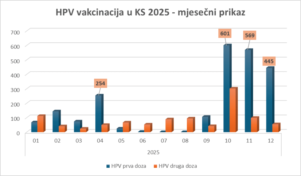 SARAJEVO, 5. februara (FENA) - Zavod za javno zdravstvo Kantona Sarajevo ostvario je tokom 2025. godine izuzetan napredak u provođenju programa imunizacije protiv infekcija izazvanih humanim papiloma virusom, bilježeći kontinuirani rast vakcinalnog obuhvata kako u ciljnoj populaciji tako i u ostalim dobnim skupinama. Sistemskim radom, jačanjem dostupnosti vakcina i intenzivnim terenskim aktivnostima Kanton Sarajevo postigao je najbolje rezultate u Federaciji Bosne i Hercegovine potvrđujući da organizovan, stručan i edukativno usmjeren javnozdravstveni pristup daje mjerljive i održive efekte.
