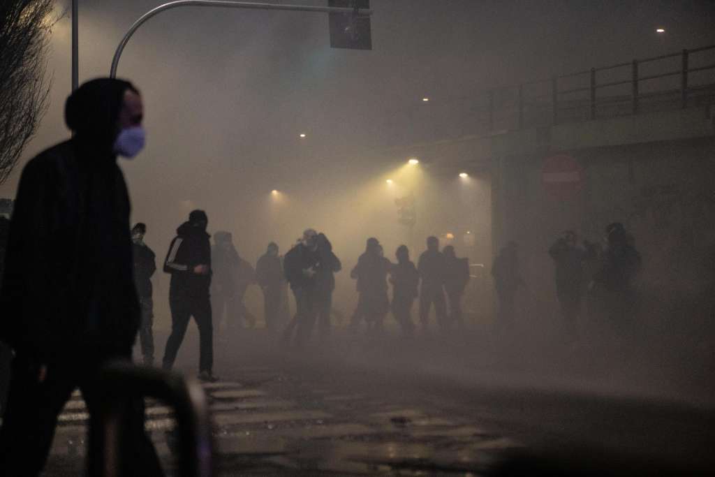 MILANO, 8. februara (FENA) - Šest osoba je uhapšeno nakon što se policija sukobila s demonstrantima u Milanu, jednom od domaćina Zimskih olimpijskih igara, tokom prvog dana takmičenja.