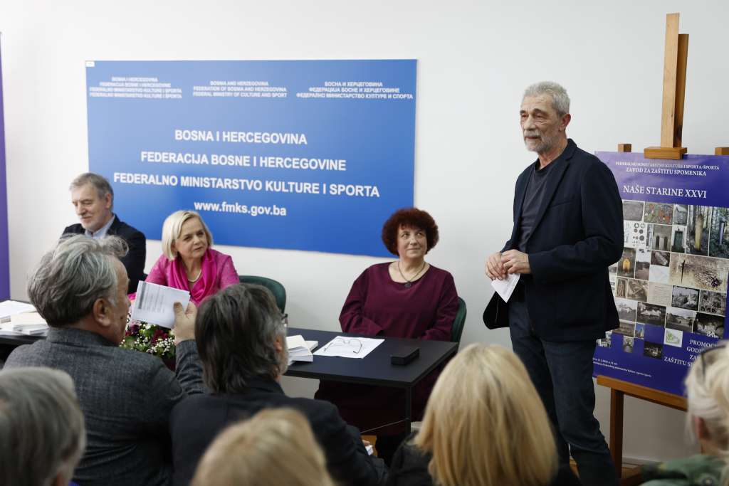 SARAJEVO,11. februara (FENA) - Federalno ministarstvo kulture i sporta i Zavod za zaštitu spomenika upriličili su danas predstavljanje godišnjaka "Naše starine XXVI" u prostorijama Ministarstva. Novi broj bogat je raznovrsnim tekstovima koji su produkt naučno-istraživačkog i konzervatorsko-restauratorskog rada na objektima kulturno-historijskog naslijeđa Federacije Bosne i Hercegovine.