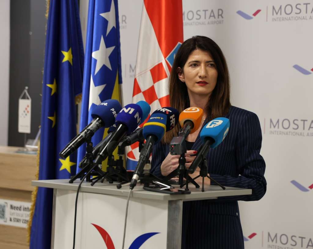 MOSTAR, 12. februara (FENA) - Hrvatski ministar mora, prometa i infrastrukture Oleg Butković i gradonačelnik Mostara Mario Kordić potpisali su u četvrtak u Mostaru Sporazum o dodjeli sredstava za unaprjeđenje sistema zračnog prometa u Mostaru prema kojem je Vlada Republike Hrvatske mostarskom aerodromu dodijelila 1,75 miliona eura.