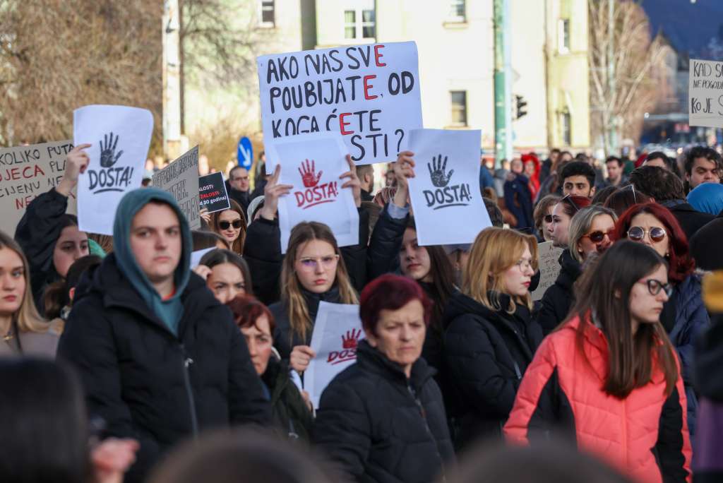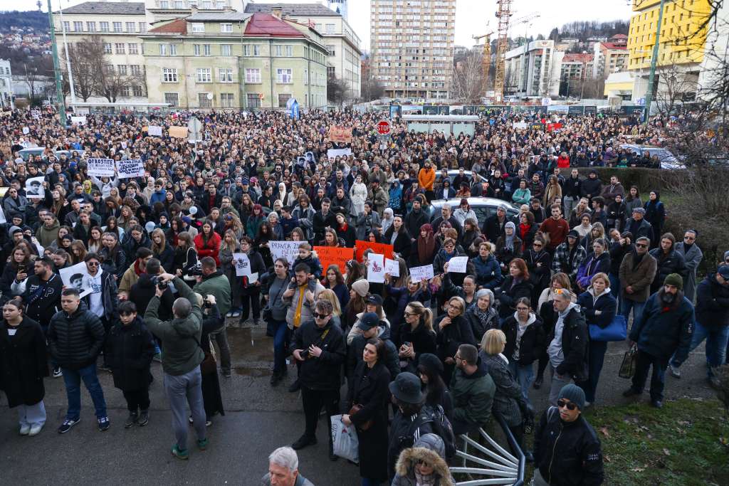 SARAJEVO, 14. februara (FENA) - U Sarajevu je u blizini Zemaljskog muzeja održan protest građana zbog tramvajske nesreće koja se dogodila 12. februara na jednoj od prometnijih saobraćajnih raskrsnica kada je tramvaj iskočio iz šina usljed čega je na licu mjesta poginuo student Erdoan Morankić iz Brčkog, koji je bio na stanici.