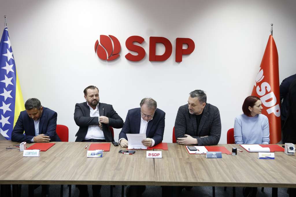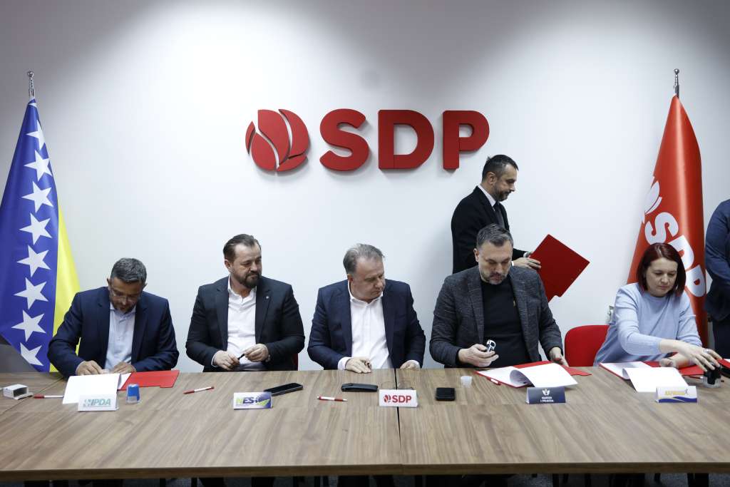 BANJA LUKA, 19. februara (FENA) - Predstavnici pet političkih partija – Socijaldemokratske partije Bosne i Hercegovine (SDP BiH), Naroda i Pravde, NES-a, stranke Naprijed i Pokreta demokratske akcije - potpisali su danas u Banjoj Luci Sporazum o zajedničkom nastupu na opštim izborima 2026. godine.