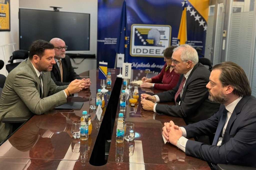 SARAJEVO, 23. februara (FENA) - Šef misije OSCE-a u Bosni i Hercegovini ambasador Rick Holtzapple boravio je u službenoj posjeti Agenciji za identifikacione dokumente, evidenciju i razmjenu podataka Bosne i Hercegovine (IDDEEA BiH), gdje se sastao sa direktorom Agencije Almirom Badnjevićem. Razgovarano je o aktuelnim izazovima i prioritetima u oblasti cyber sigurnosti, s posebnim akcentom na zaštitu ličnih podataka građana i jačanje institucionalnih kapaciteta u borbi protiv cyber prijetnji.