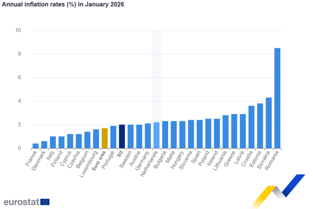 LUXEMBOURG, 26. februara (FENA) - Godišnja stopa inflacije u eurozoni u januaru 2026. godine iznosila je 1,7 posto, što je pad u odnosu na dva posto u decembru, dok je godinu ranije iznosila 2,5 posto, objavio je Eurostat.