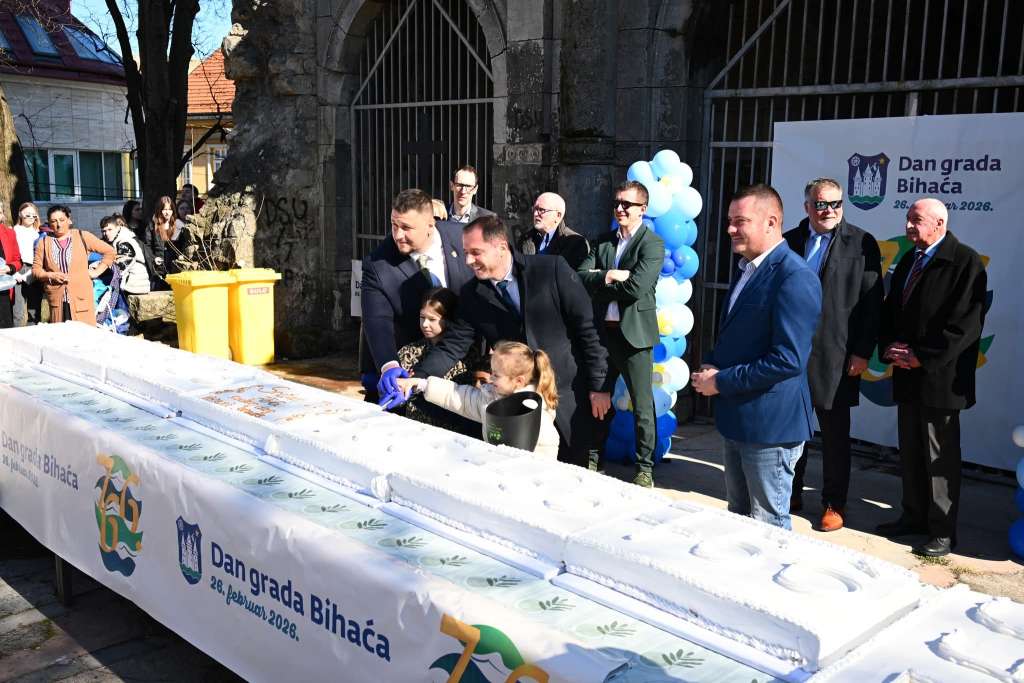 BIHAĆ, 26. februara (FENA) - Bihaćki ugostitelji i hotelijeri poklonili su danas sugrađanima, u povodu 766. rođendana grada na Uni, veliku rođendansku tortu. Na platou crkve Sv. Ante Padovanskog, rođendanska torta je poslužena građanima u okviru programa obilježavanja Dana grada.