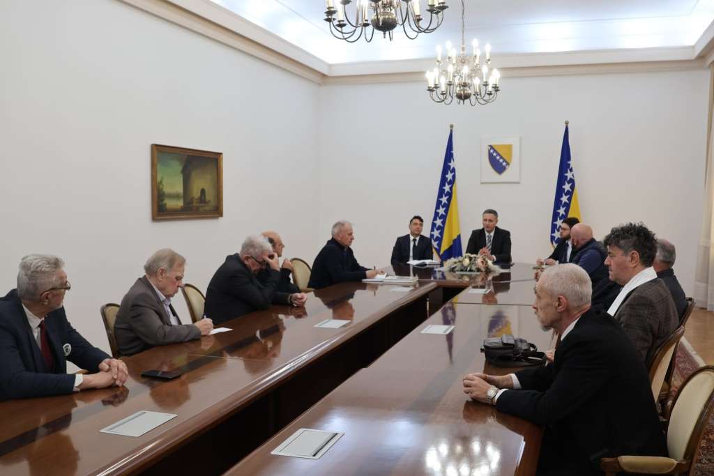 SARAJEVO, 3. marta (FENA) - Član Predsjedništva BiH Denis Bećirović razgovarao je s delegacijom Saveza brigadnih udruženja 1. korpusa Armije Republike Bosne i Hercegovine o aktuelnim političkim i sigurnosnim izazovima u Bosni i Hercegovini. Istaknuta je važnost jačanja državnih institucija, kao i kontinuiranog promoviranja mira, slobode, demokratije i vladavine prava.