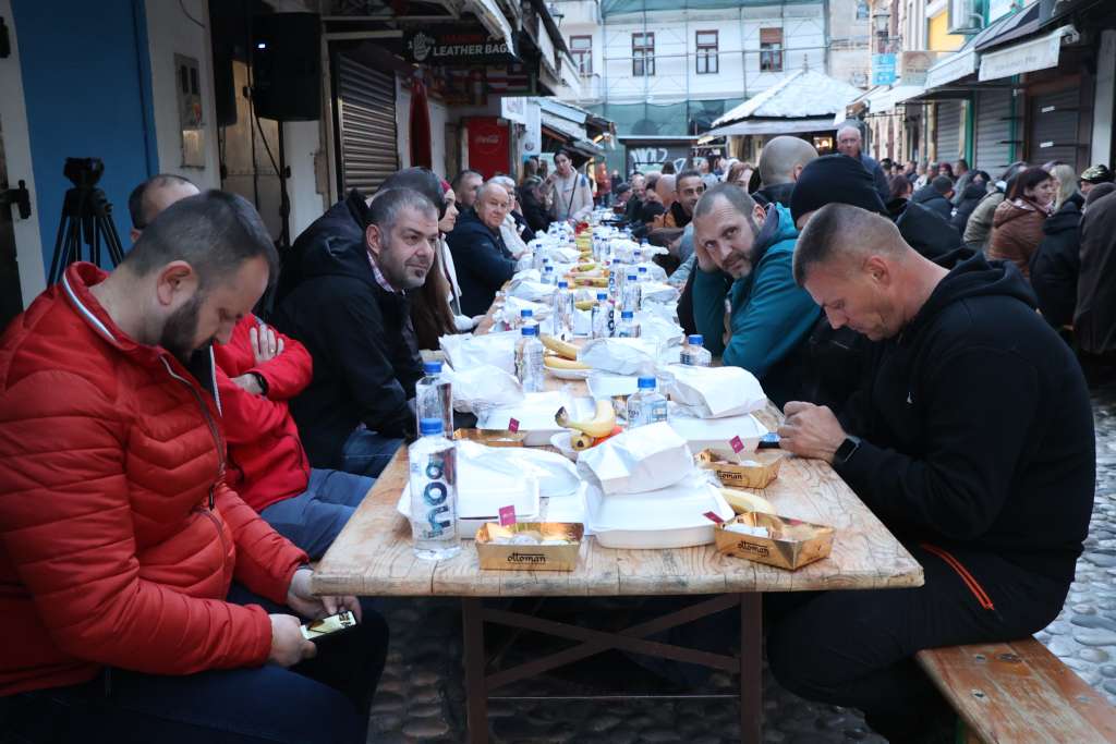 MOSTAR, 16. ožujka (FENA) – U staroj gradskoj jezgri Mostara upriličen je zajednički iftar na otvorenom.