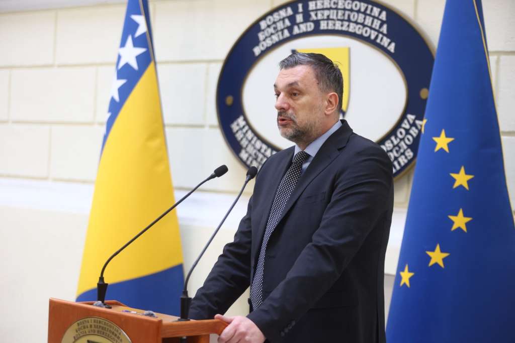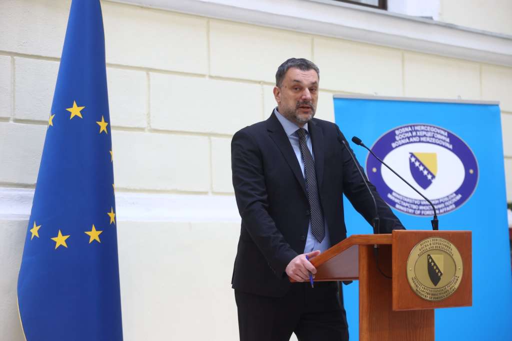 SARAJEVO, 21. marta (FENA) – Ministar vanjskih poslova Bosne i Hercegovine Elmedin Konaković danas je na konferenciji za novinare u Sarajevu govorio o izazovima u međunarodnim odnosima u kojima se Bosna i Hercegovina trenutno nalazi, istaknuvši da se u ovom mandatu dešava izuzetno mnogo važnih situacija koje zahtijevaju brzu i jasnu komunikaciju, posebno zbog globalnih kriza koje se reflektuju i na BiH.