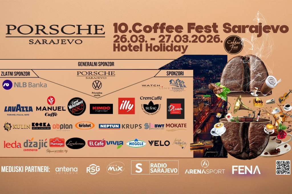- Posebnu zahvalnost upućujemo našem generalnom sponzoru Porsche Sarajevo, čija podrška ima ključnu ulogu u realizaciji ovog značajnog jubileja. Također, veliko hvala i našem zlatnom sponzoru i sponzoru takmičenja NLB Banka d.d. Sarajevo, sponzorima i partnerima koji su prepoznali vrijednost i potencijal festivala, te svojim angažmanom doprinijeli njegovoj organizaciji na visokom nivou. Zahvaljujemo se i svim izlagačima koji svojim kvalitetom, inovativnošću i profesionalnim pristupom čine srž festivala. Posebnu zahvalnost upućujemo i našim medijskim partnerima – Arena Sport, RSG Radio, Antena Sarajevo, Mix Radio, Radio Sarajevo i FENA – koji su svojim kontinuiranim praćenjem i promocijom doprinijeli vidljivosti i uspjehu festivala. Posebno priznanje ide i brojnim posjetiocima koji su od samog otvaranja ispunili festivalski prostor, stvarajući jedinstvenu atmosferu i potvrđujući da Sarajevo istinski živi kulturu kafe - saopćili su organizatori.