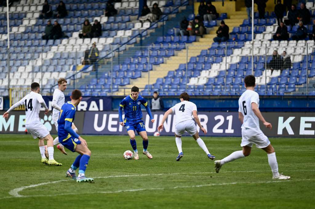 SARAJEVO, 27. marta (FENA) - Mlada nogometna reprezentacija Bosne i Hercegovine je u petom meču kvalifikacija za Evropsko prvenstvo za igrače do 21 godine danas na Grbavici odigrala neriješeno 0:0 sa selekcijom Slovenije.