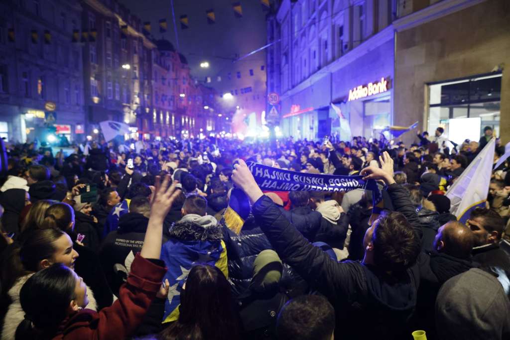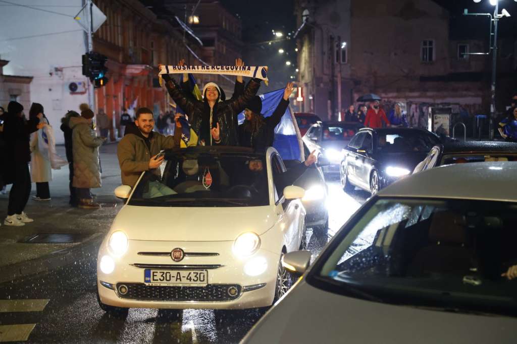 SARAJEVO, 1. aprila (FENA) - Nakon pobjede nogometne reprezentacije Bosne i Hercegovine nad Italijom i plasmana na Svjetsko prvenstvo širom Bosne i Hercegovine počelo je slavlje navijača koji su izašli na ulice bh. gradova.