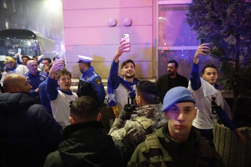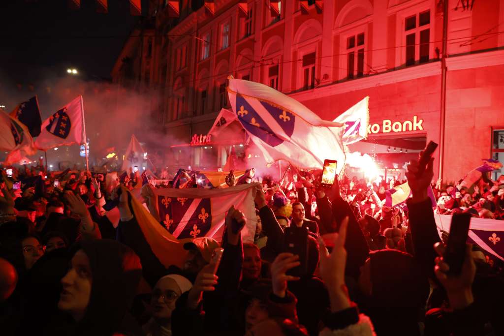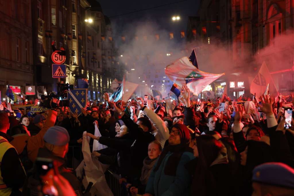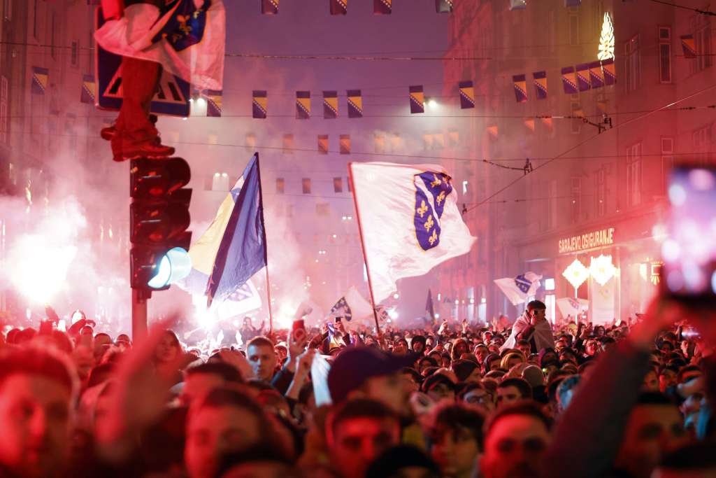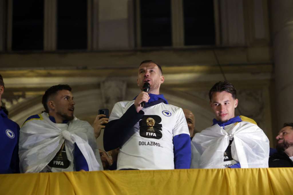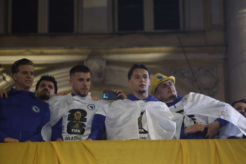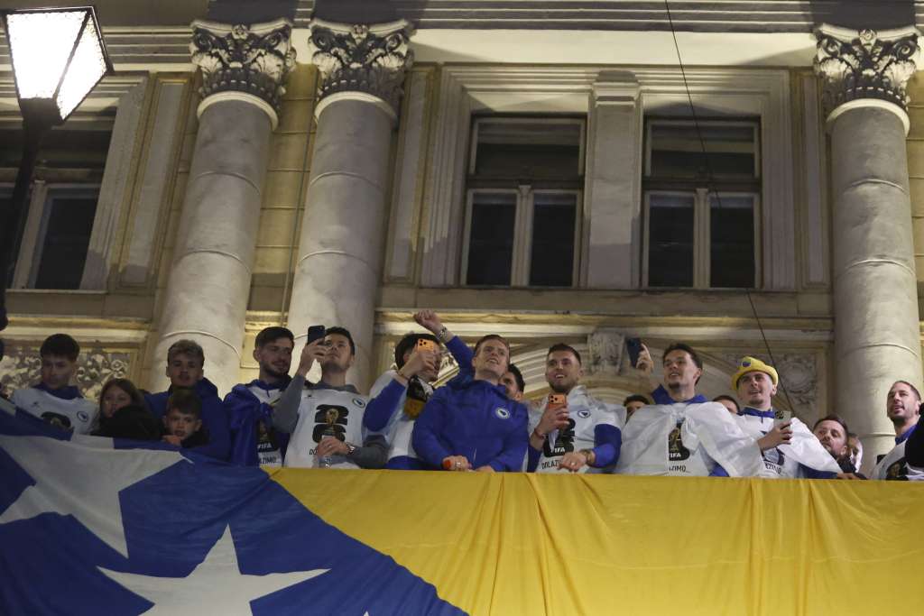 SARAJEVO, 1. aprila (FENA) - Desetine hiljada ljudi okupilo se večeras u Sarajevu u Titovoj ulici, ispred Vječne vatre, gdje su dočekali nogometaše BiH sa kojim su proslavili plasman na Svjetsko prvenstvo.