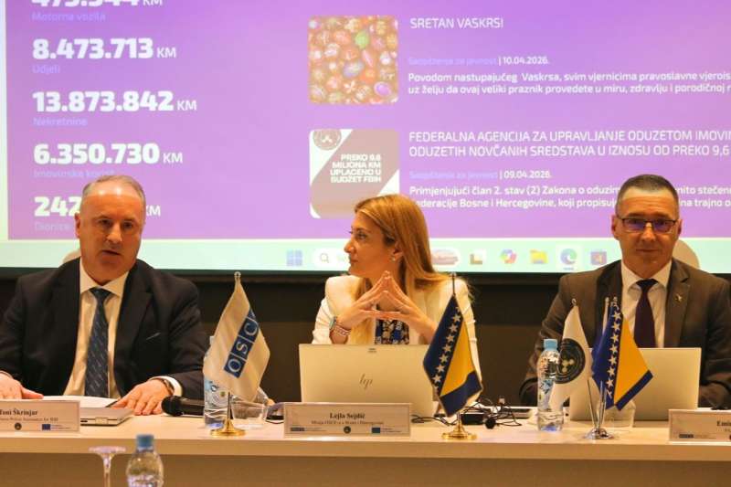 SARAJEVO, 1. aprila (FENA) – Glavni tužioc Tužilaštva Bosne i Hercegovine Milanko Kajganić i specijalna predstavnica i koordinatorica OSCE-a za borbu protiv trgovine ljudima dr. Kari Johnstone, danas su na sastanku razgovarali o radu Tužilaštva BiH i Odsjeka za borbu protiv trgovine ljudima i ilegalnih migracija.