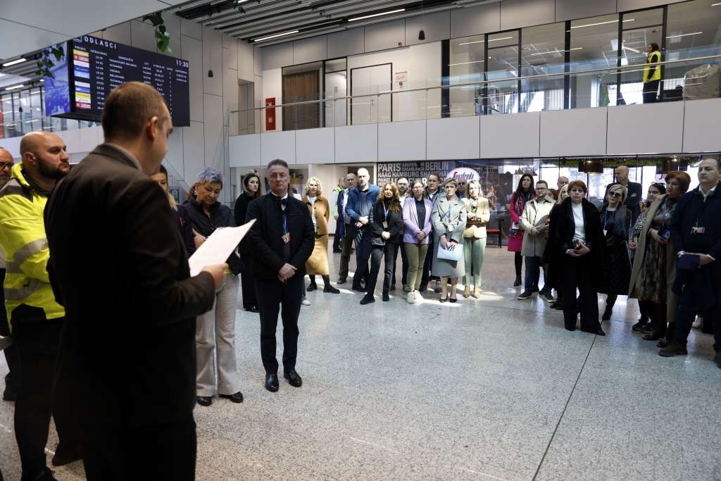 SARAJEVO, 6. aprila (FENA) - Na Međunarodnom aerodromu Sarajevo danas je prigodnom ceremonijom odata počast Jasminu Kadiću i Reufu Muhiću, hrabrim pripadnicima Policije Republike Bosne i Hercegovine koji su 1992. godine dali svoje živote braneći aerodrom i domovinu. U znak sjećanja i poštovanja cvijeće su položili članovi uprave društva Dino Selimović i Slobodan Kadijević.