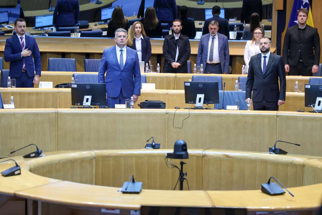 SARAJEVO, 8. aprila (FENA) - Hitna sjednica Doma naroda Parlamentarne skupštine BiH je počela, ali je odmah nakon intoniranja himne BiH predsjedavajući Doma Kemal Ademović dao pauzu od 10 minuta kako bi se pokušao osigurati kvorum za rad.